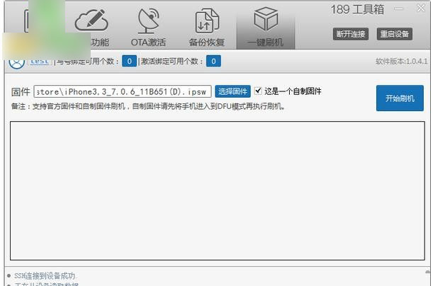 189工具箱是一款非常好用且功能强大的手机写号软件,主要针对的是iphone手机,可以兼容IOS4.0-IOS7等系统,拥有基础功能、ota激活、备份恢复以及一键刷机等栏目,本站提供了189工具箱下载地址,有需要的朋友们可以前来下载使用。