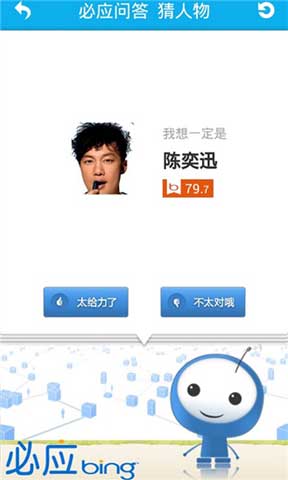 《比应问答》是一款相当好玩的读心游戏,机器人可以透过你所想的列出问题来,根据问题猜出你所想的人物,电影等等.