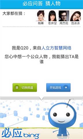 必应问答是基于微软人立方研究项目的一个猜谜/读心游戏,与您交互问答的是一个读心机器人。