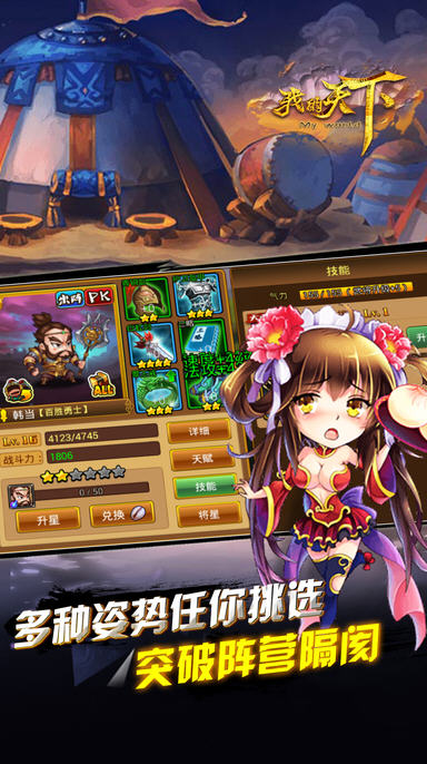 我的天下手游苹果版是一款回合制战争策略类手游,游戏中各种三国猛将都可以成为你的属下,陪你一起征战沙场,各种技能搭配,超级好玩,快来下载吧!