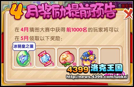 获得方法:洛洛猜图大赛4月积分排行榜前1000的玩家可以在5月领取冰萌皇之蛋奖励。