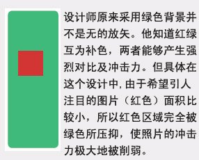 加深绿色:加深绿色的作用是减少与红色形成过于强烈的对比,现在红色及绿色的"份量"大概平等,起到恰当的互补关系,而没有出现谁要控制谁的现象。